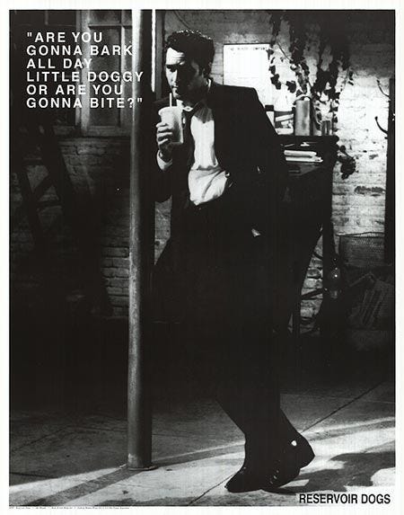 But hold the damn phone! I’m not a crier. The “Reservoir Dogs,” poster I mentioned in Part One; The one I had hanging on my wall, framed of course, featured the iconic line Mr. Blonde utters, (played by the legendary Michael Madsen), “Are you gonna bark all day little doggie or are you gonna bite.” This energy is far more my standard operating procedure than crying is, but for this particular moment, with these particular people, on this particular field, under that particular (still full) moon, listening to that particular band, knowing just how many things had to go right to make it happen in the most perfect way possible, remembering all the times I had major life moments and meetings with my self-awareness to these songs, there was nothing I could do to make those tears stop. So I didn’t. I cried my face off for that whole song, and it was the most wholesome and thorough purge I could’ve ever asked for.